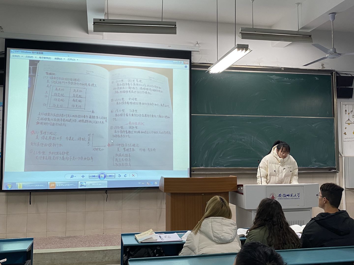 活动中五名参赛选手叶丽亚、徐菁、徐雨菲、孙云峰、张乃豪依次展示了自己英语、管理学、高数等课程的笔记。叶丽亚在笔记中给自己设问帮助理解笔记内容;徐菁把重点用图形或彩色笔标注;徐雨菲将重点划线并在英语笔记采取左中右英的方式帮助记忆;孙云峰做思维导图帮助逻辑记忆;张乃豪整理笔记框架。简洁工整、重点突出的知识点梳理,思路明确、环环相扣的思维导图,绘制精美、标注清晰的图文说明,这些对学习和理解记忆十分有帮助的方法让同学们懂得了如何做好笔记。此外同学们也领悟到了五位同学认真对待课程内容和上课认真仔细的精神,同学们都有所触动并表示会将其作为榜样。通过此次活动,同学们学习到许多归纳总结笔记的方法,为今后的学习奠定了良好的基础。笔记的分享使学生中营造了浓厚的学习氛围。