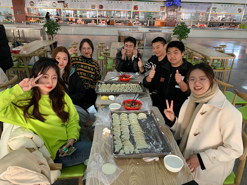 随后,徐倩老师亲手为同学们包了有着特殊馅料的饺子并放入大家的饺子中,由食堂的工作人员进行煮制,分盛给各位同学。有一位“幸运儿”吃到了特殊馅料的饺子,获得了“幸运儿”专属的礼品——有着辅导员亲笔所写祝福的便签本。