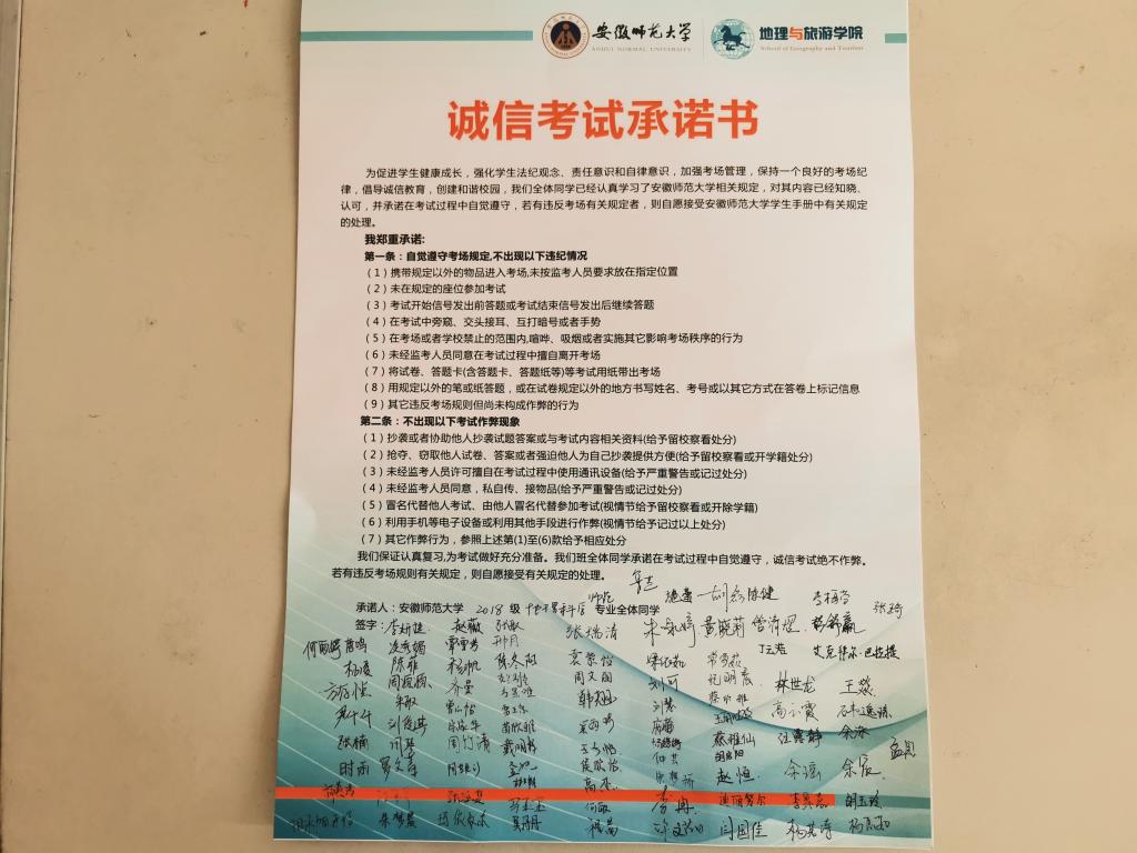 会议伊始,丁茹栩强调了考试作弊的严重后果,以往届学生作弊被抓案例和自己监考中发现的实际问题为切入口,提醒同学们遵守考试纪律,号召同学们做到诚信考试,营造良好的诚信考试氛围。与此同时,丁茹栩建议大家在最后的期末复习时间,劳逸结合、脚踏实地,诚信应考,以真实水平迎接期末考试,从根本上防范和杜绝作弊行为。此外,丁茹栩提醒同学们及时登录beat365英国官方网站教务系统查询考试的具体安排,不要出现记错考试时间,跑错考场的现象。会议最后,每个同学依次在诚信考试承诺书上签好了自己的姓名,并承诺在考试过程中自觉遵守考试纪律,绝不出现舞弊行为,若有任何违反考场规则的行为,自愿接受规定的处理。