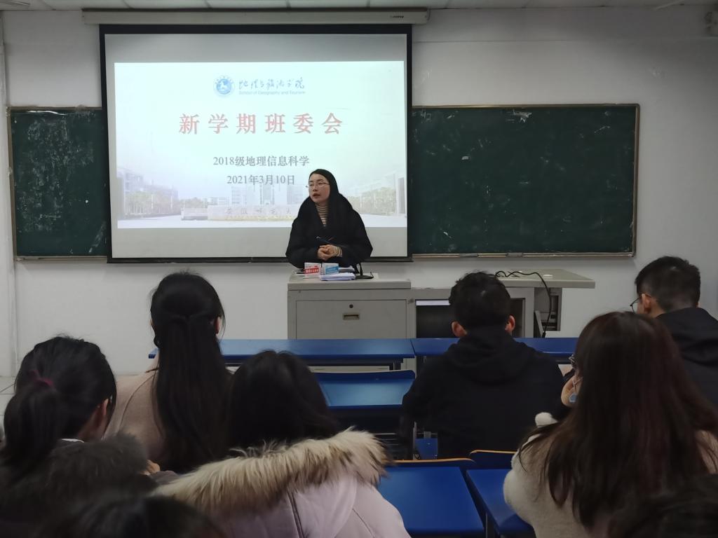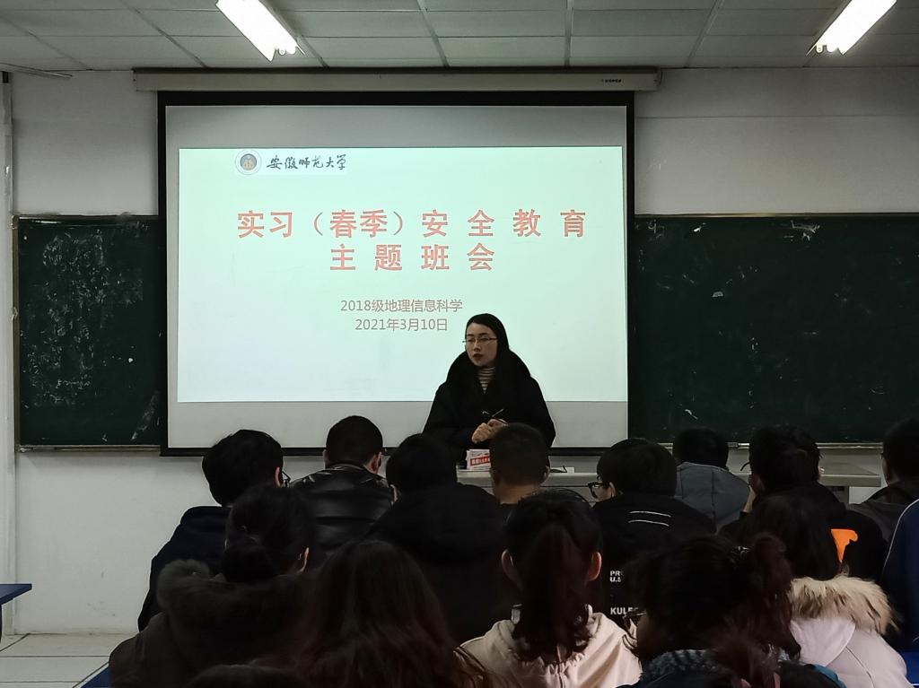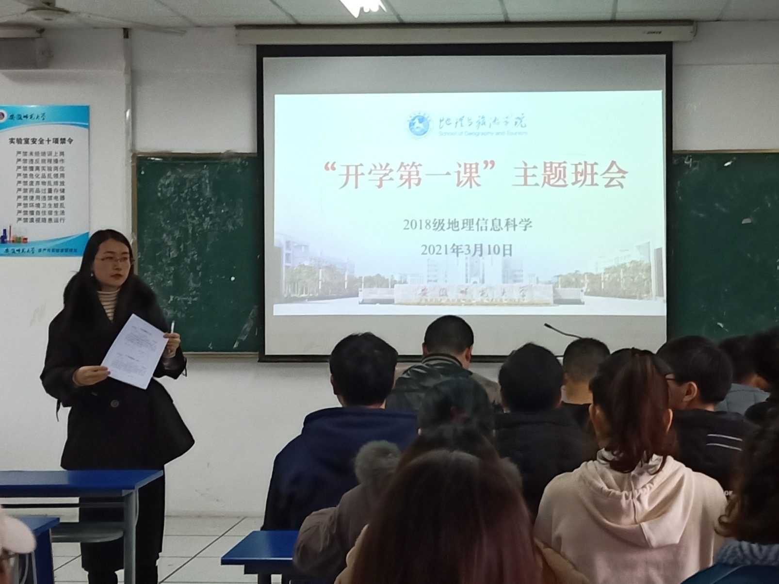 本网讯(孙雯杰 彭媛媛)新学期新气象,为加强同学们思想教育,提醒实习相关事项,2018级地理信息科学专业于2021年3月10日下午4:30在beat365英国官方网站实验楼203开展“开学第一课”暨实习安全教育主题班会。班会由辅导员彭媛媛主持,2018级地理信息科学专业全体同学参与。