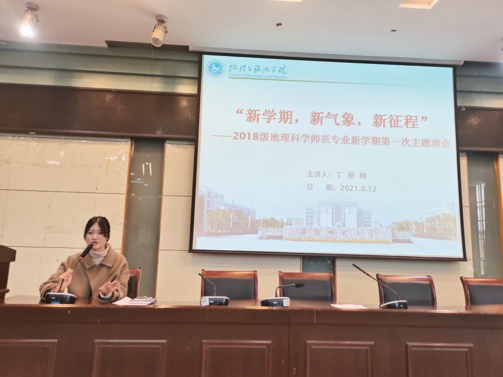 本网讯(地旅学院 丁茹栩 罗文菁)新学期,新气象,新征程,为加强自身安全建设,2018级地理科学(师范)专业于3月12日下午四点在地旅学院实验楼101报告厅开展“开学第一课”主题班会。会议由辅导员丁茹栩主持,2018级地理科学(师范)专业全体同学参与。