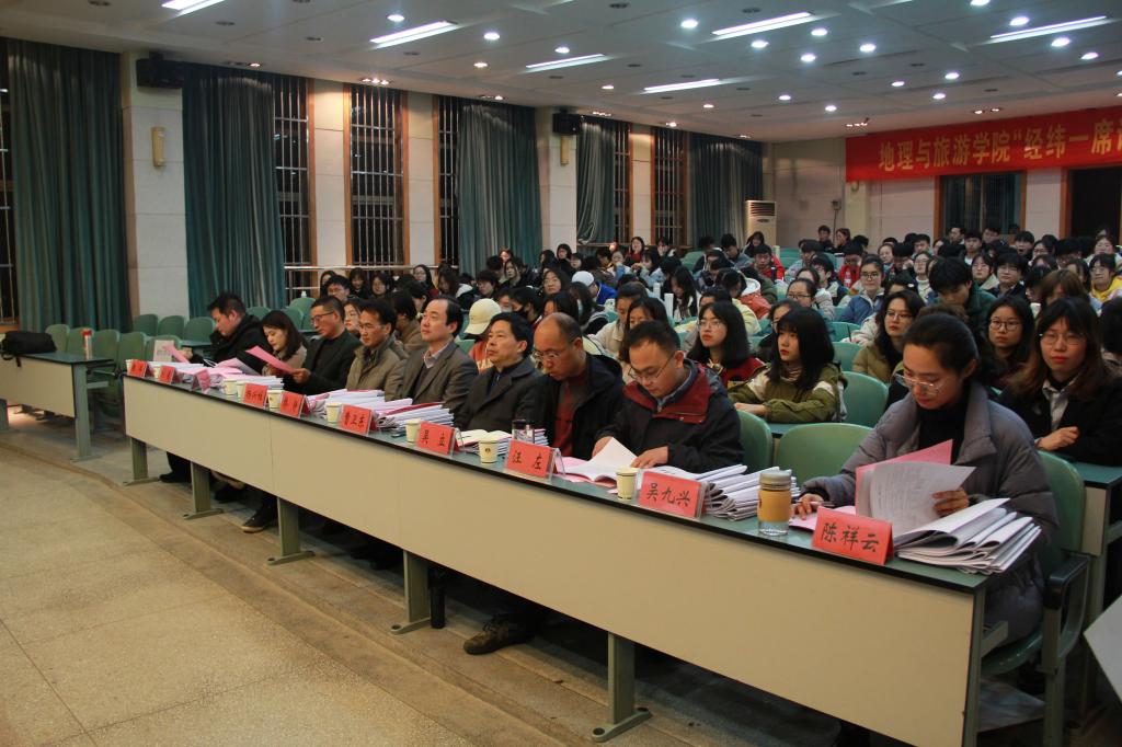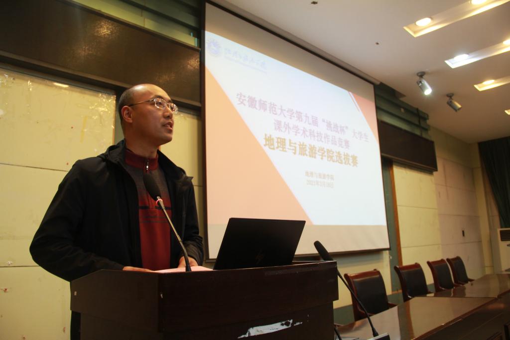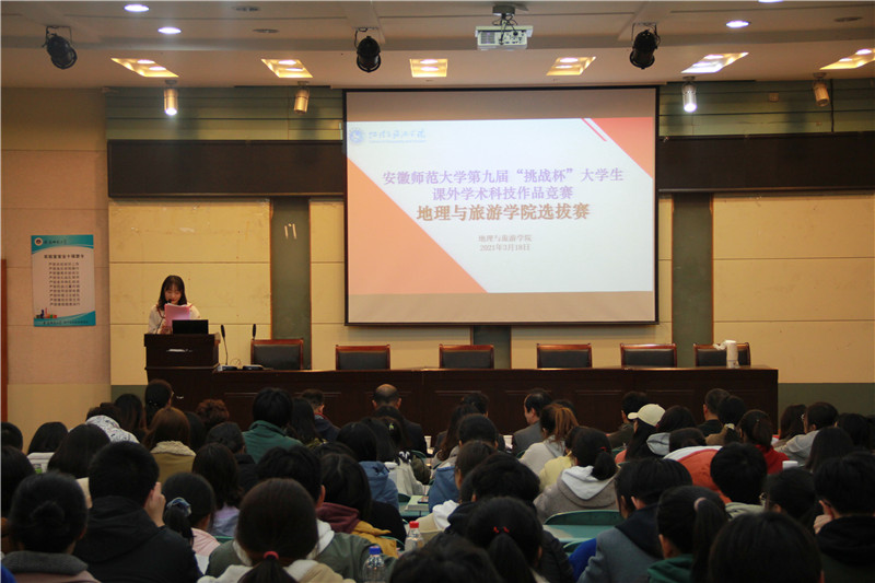 本网讯(地旅学院 洪茹芊 张楠)为引导和激励广大学生努力学习、刻苦钻研、勇于创新,促进我校学生课外学术科技活动的蓬勃开展,努力提升青年学生创新精神和实践能力,3月18日晚,beat365英国官方网站在院实验楼101报告厅举办第九届“挑战杯”大学生课外学术科技作品竞赛院级选拔赛。地旅学院党委副书记乔静、副院长曹卫东到场指导,地理科学专业负责人朱永恒,城乡规划专业负责人杨兴柱,院团委副书记、地理科学专业教授吴立,地理信息科学专业负责人汪左,酒店管理专业教师张伟,旅游管理专业教师洪娟,学院团委书记陈祥云等出席活动并担任现场评审,学院教授委员会教授焦华富、程久苗,土地资源土地资源管理专业副教授吴九兴参与线上评审。