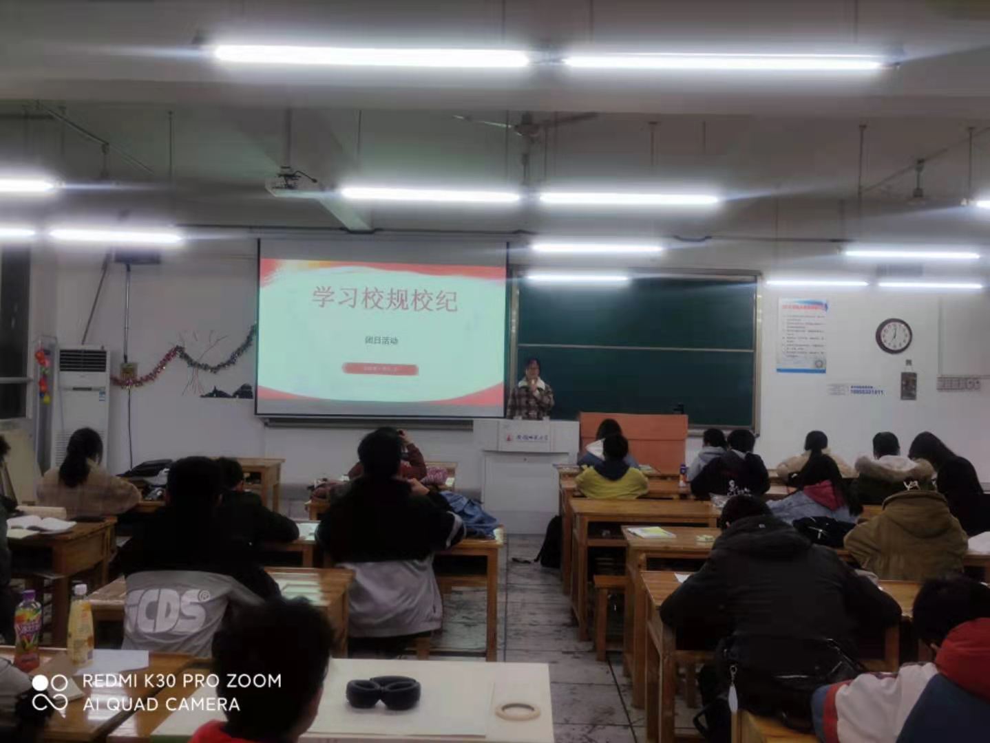 【本网讯】(地旅学院 刘少杰 袁明峻)为保证学校正常的教育教学秩序,保障同学们的安全,加强学校的管理,引导学生将国家法律法规、学校校规校级内化于心、外化于行,3月21日晚,20级城乡规划精心准备并认真开展了一次校规校级学习教育主题活动,本次活动由团支部书记徐嘉祺主持,辅导员刘少杰、班级全体同学参与。