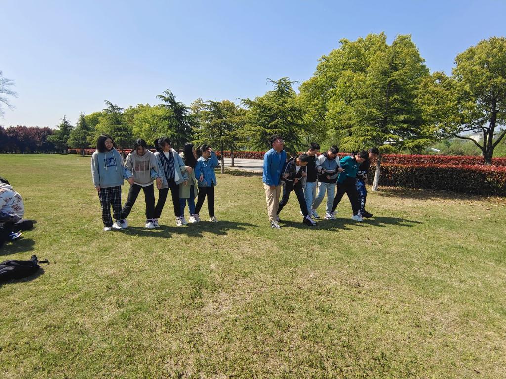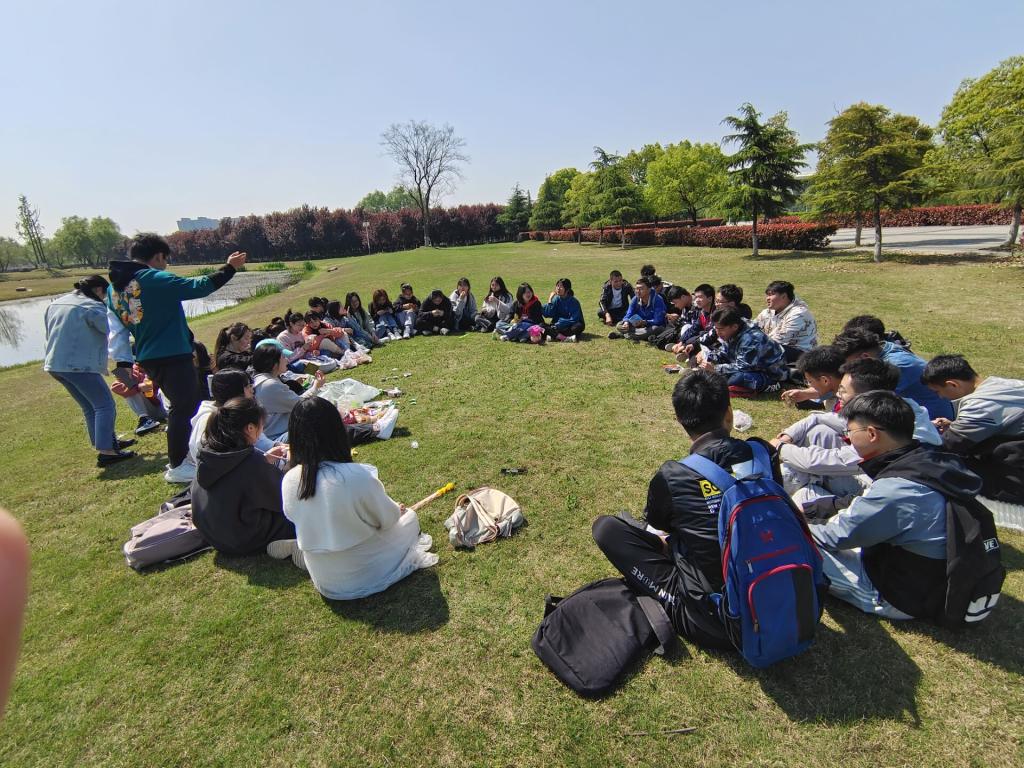 活动初始,同学们从教学楼集合出发,一路上,同学们唱着动听的歌曲,吟诵着春天的诗,走在学校的小路上,笑容洋溢,形成了一道亮丽的风景线。到达军训草坪后,同学们进行了三人两足、老鹰捉小鸡,狼人杀等乐趣小游戏。本来还并不是十分熟稔的同学们在游戏及聊天的氛围中增进了感情,在阵阵欢笑中,享受到了春游的无限乐趣。