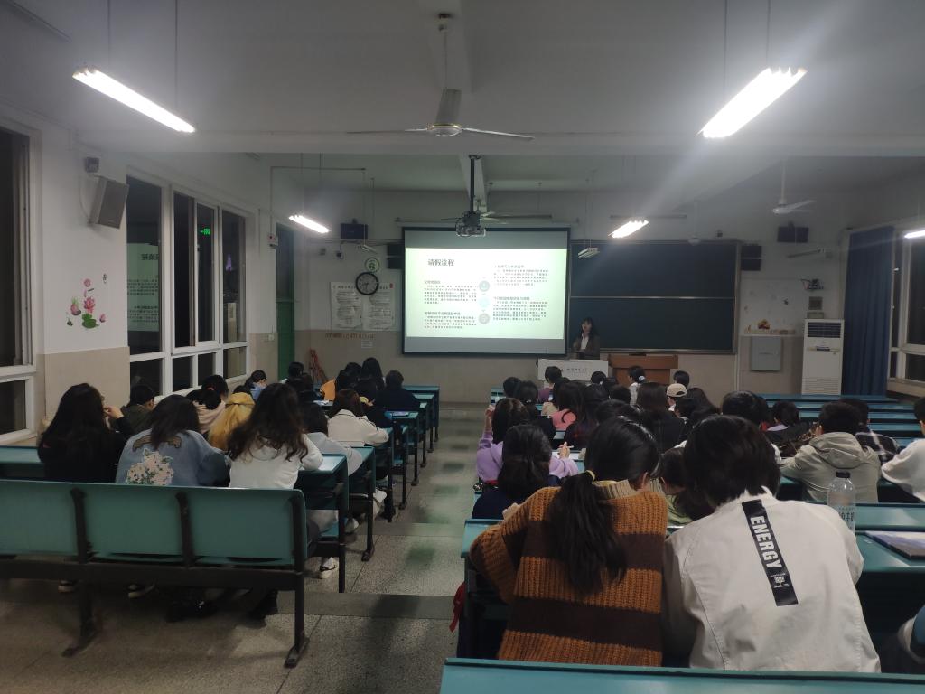 辅导员张慧首先向同学们介绍了五一返乡的请假流程及注意事项。本次五一节假期时间长、人流量大,做好疫情防护工作格外重要。张慧表示,无论是在校还是离校,同学们都要注意保护自己的人身和财产安全,同时要保持良好的生活作息,早睡早起,及时完成课程作业和复习计划。对于留校的学生,张慧则着重强调了校规校纪,希望留校学生严格遵守寝室规章制度,学习使用实验室的注意事项,安全、文明度过假期。