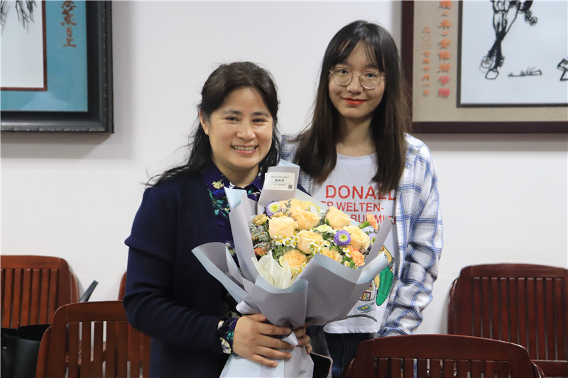 英语班代理班主任丁茹栩介绍了英语班课程培训方案以及后续课程安排。丁茹栩指出,英语课程立足少数民族学生英语学习基础,围绕大学英语四级考试要求,实行“一对多”“一对一”“多对一”的课程辅导帮扶形式,并根据各年级学生的培养方案情况开展相关课程。丁茹栩表示,此次英语班学员涵盖了地旅学院、历史学院、新传学院三个学院六个专业的12位同学,真正体现了“团结花开”民族班的内涵意义。丁茹栩还详细介绍了英语班的授课内容,包括英语听力培训、英语口语培训、英语阅读培训和英语写作培训四大模块。