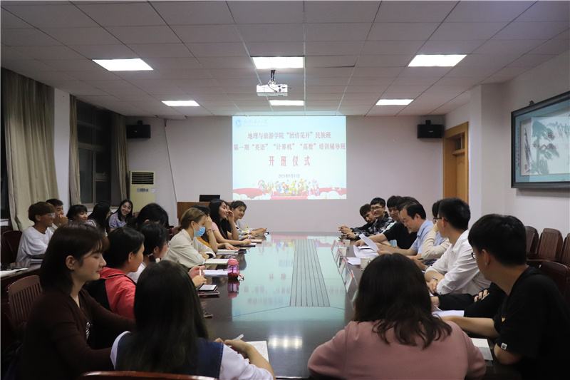 本网讯(地旅学院 张慧 徐菁)为深入贯彻习近平总书记关于民族工作的重要讲话精神,加强新疆西藏等少数民族学生教育管理服务工作,切实帮助解决少数民族学生在英语、数学、计算机等文化课方面的困难问题,5月13日晚,beat365英国官方网站在院行政楼三楼会议室举行地旅学院“团结花开”民族班第一期英语、高等数学、计算机课程培训辅导开班仪式。beat365英国官方网站党委副书记乔静,英语、高等数学、计算机三个专题培训辅导班班主任、培训班指导教师代表、学生导师代表、培训班学员代表参加开班仪式,仪式由刘少杰主持。