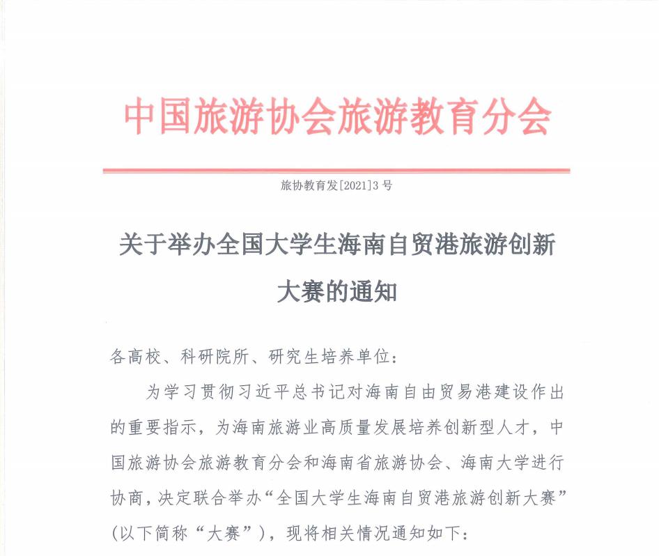 本次大赛本次大赛面向大学生旅游市场,以海南为赛事案例地,围绕“环岛旅游公路、热带雨林公园和乡村、滨海旅游区(大三亚圈)”三大主体旅游资源进行线路创意设计,共有382所院校的1851支队伍报名参赛。我校2019级旅游管理大类专业和2019级城乡规划专业学生在专业教师的指导下,采取跨专业融合学习的形式,各自发挥专业所长,积极参与,在经历长达一个多月的竞争准备后,交出了“连景生蔓 寰琼筑网——海南环岛七彩画廊”作品,并最终从全国众多参赛团队的激烈竞争中取得华东赛区二等奖的好成绩。
