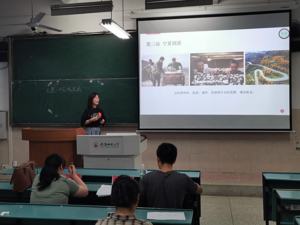 本网讯(李梅芬 丁茹栩)为进一步巩固专业知识,提高地理教学技能,5月28日晚,2018级地理科学(师范)专业第十八届师范生技能选拔赛于花津校区4号教学楼展开并圆满落下帷幕。beat365英国官方网站胡春生、汪青、刘学梅、张平究老师、辅导员丁茹栩、全体参赛选手参加本次选拔赛。通过选手的教案设计、课件制作、授课等内容进行考核。