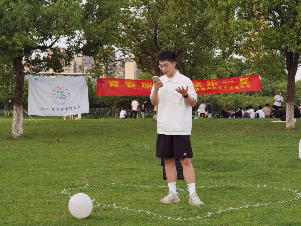 本网讯(地旅学院 孙云峰 赵佳慧)挑战自我、熔炼团队;凝聚力量、成就自我。为增强2020级旅游管理专业学生的班级凝聚力,增进同学们之间的感情,促进班级内部的交流,营造积极向上的集体氛围和发扬互帮互助的团队精神,5月30日傍晚,在辅导员赵佳慧老师的带领下以及班委们的组织下,2020旅游管理专业全体学生在校内草坪上开展了生动有趣的户外素质拓展实践活动。