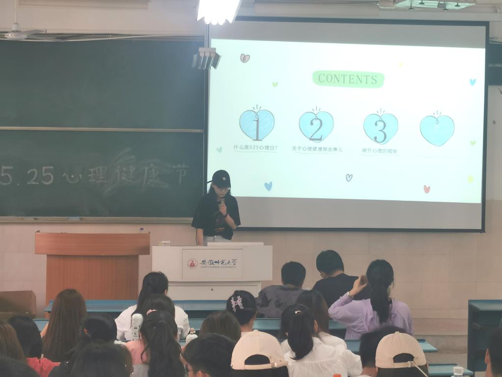 活动第一项,心理委员丁瑞欣介绍了心理健康节的由来,剖析了大学生可能遇到的心理问题和相关案例,鼓励同学们正确、适度排解不良情绪。