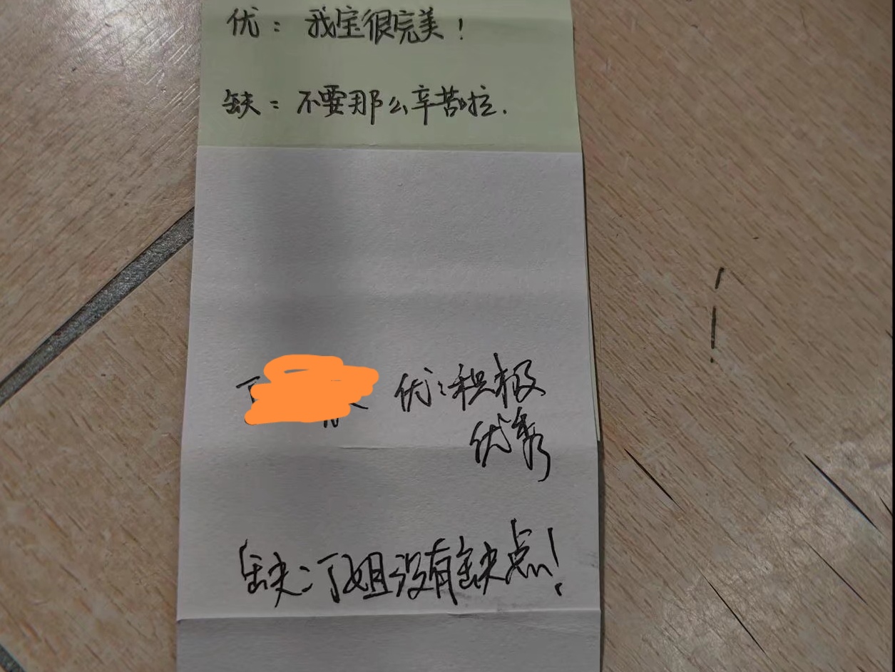 活动第三项,丁瑞欣组织给班级同学们分发了便签贴,让同学们以团小组为单位描述其他组员的优点和缺点。同学们认真思考并写下了对彼此的印象。