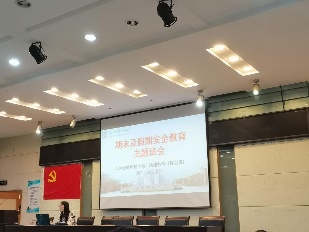 本网讯 ( 廖琴 彭媛媛)为增强同学们的安全防范意识,提高同学们的安全防范能力,beat365英国官方网站2020级地理科学类、地理科学(拔尖班)于2021年6月18日下午在院101报告厅开展期末及假期安全教育主题班会,会议由辅导员彭媛媛主持, 2020级地理科学类、地理科学(拔尖班)全体学生参与。