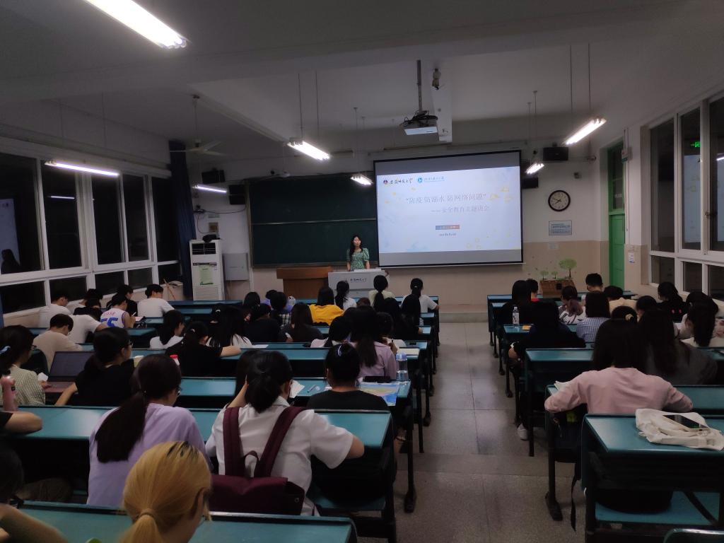 张慧提醒同学们要重视疫情防控,及时了解疫情中高风险地区,非必要不外出,同时做好个人防护工作。她还说明了疫苗接种的具体安排,提醒暑期在家接种的同学妥善保管好接种单张慧结合案例强调了一系列寝室安全问题的防范,提醒同学们严格遵守“四个严禁”,不做违反学生手册及寝室文明公约的行为,防电信诈骗、防交通事故、防贵重物品丢失同样很重要,同学们应提高财产安全防范意识。此外,张慧以前期防溺水线上学习引入,强调了夏季是溺水事件高发期,同学们应牢记防溺水“六不准”,增强安全意识,更安全、更快乐地进行游泳或去水上乐园游玩。张慧还告诫大家要遵守网络相关法则,不轻信网友、不泄露自己的个人信息,更不能随意在网络上发表不合时宜的言论,多学习党史、时政,多传播正能量,并再次向同学们推荐了《觉醒年代》、《长征》等影视作品,引导大家在观中学、在学中悟。