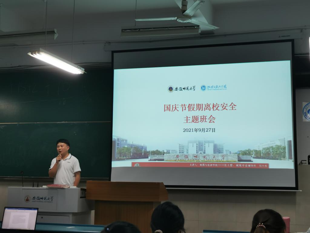 本网讯(地旅学院 刘少杰 耿艺榕)为增强同学们的安全防范意识、提高防范化解安全事故能力,更好落实疫情防控各项工作,9月27日晚, 20级城乡规划和20级土地资源管理专业召开安全教育和疫情防控主题班会,会议由辅导员刘少杰,20级城乡规划和20级土地资源管理全体学生参与。