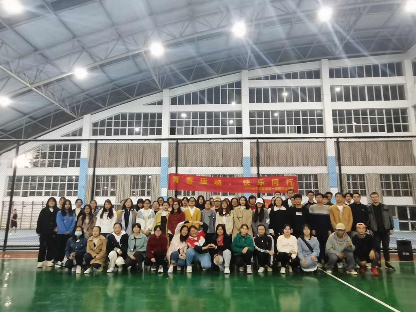 活动伊始,体育委员许林伟组织同学们用报数方式分成了6个游戏小组,每项游戏都会有小组积分,总分位于前三名的小组会有奖品鼓励。接下来就来到了游戏环节。游戏内容分共有四个部分,分别为“拔河”、“计时投篮”、“排球传递”以及“多人多足”。第一个热身小游戏拔河,6个小组,两两对抗,胜出的小组再进行第二轮,虽为传统团队游戏,同学们依旧表现出了高昂的情绪,看似比力气,实则考技巧,欢呼呐喊声此起彼伏,现场气氛热烈。接着第二项的“计时投篮”,每组派出三名同学,一人投球,两人传球,站在罚球线内计时两分钟投篮,数量最多的小组获胜。这个游戏中,男生投篮有优势,让人惊喜的是女生们也表现出不俗的实力,引得同学们连连叫好。休息间隔十分钟后,游戏来到了第三项“排球传递”,每组派出六名同学用手颠传排球,用时最短的小组获胜。传球过程中一片欢声笑语,运动场馆内处处暖意盈盈。最后一项游戏6个小组每位成员都需要参与其中,规定距离,同样是用时最短的小组获胜。多人多足最考验合作和默契,绑住的是脚,联动的是心,整个游戏过程中场馆内都洋溢着笑声和活力。随着游戏环节的结束,这次的户外素质拓展活动也进行到了尾声。班委给每位同学发放饮料,最后大家一起合影留念。游戏全力以赴,活动尽兴而归。