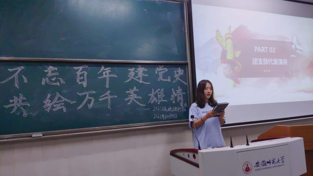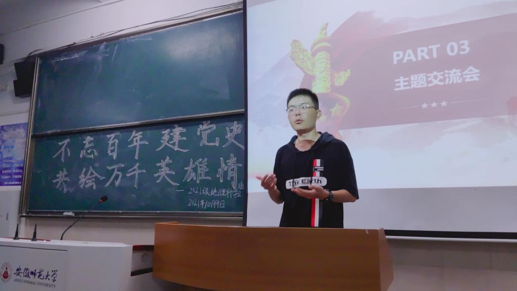 本网讯(地旅学院 韩红豆 周润)为深入学习习近平总书记“七一”重要讲话精神,激励和引领团员青年时刻牢记总书记嘱托,践行青春使命,10月9日晚,21级地理科学(师范)2班在教学楼2040204开展主题团日活动。本次活动由团支书王彩安同学主持,班级全体同学参加。
