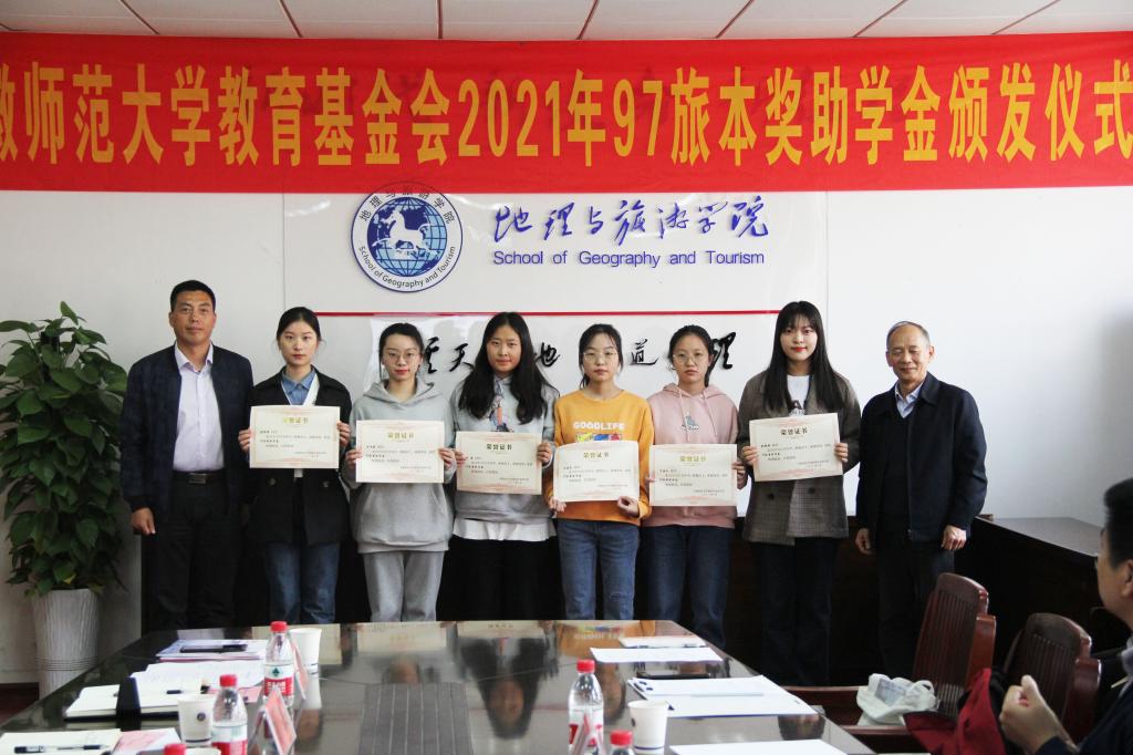 签约仪式结束后, beat365英国官方网站教育基金会2021年97旅本奖助学金颁发仪式在地旅学院行政楼三楼会议室举行。乔静对与会的领导嘉宾表示热烈欢迎,并介绍了97旅本奖助学金的设立背景和发展历程。随后,贡植斌宣读颁发决定以及获得本年度97旅本奖助学金的人员名单。颁奖仪式环节,1997级旅游管理专业本科班毕业校友代表与贡植斌、项家春分别为丁雅欣、冯安兰等12名获奖受助同学颁发获奖受助证书。