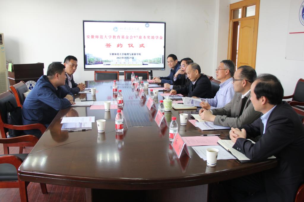 随后,项目共同发起人、原1997级旅游管理专业本科班同学、安徽商贸职业技术学院旅游系负责人张启全与贡植斌代表双方共同签署了捐资助学协议书。