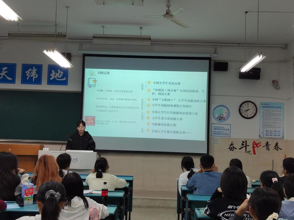 经验分享助成长。在经验介绍方面,学姐们既提出了“自觉”、“目标”、“主动”等勉励,也告诫同学们不要“假勤奋”、“一味合群”、“颓废拖延”。这既是自身的经验总结,也回顾过往的反思。分享后,同学们积极提问,就专业学习、课余生活、考级考证、社会实践和未来发展等方面提出了问题并互相交流。