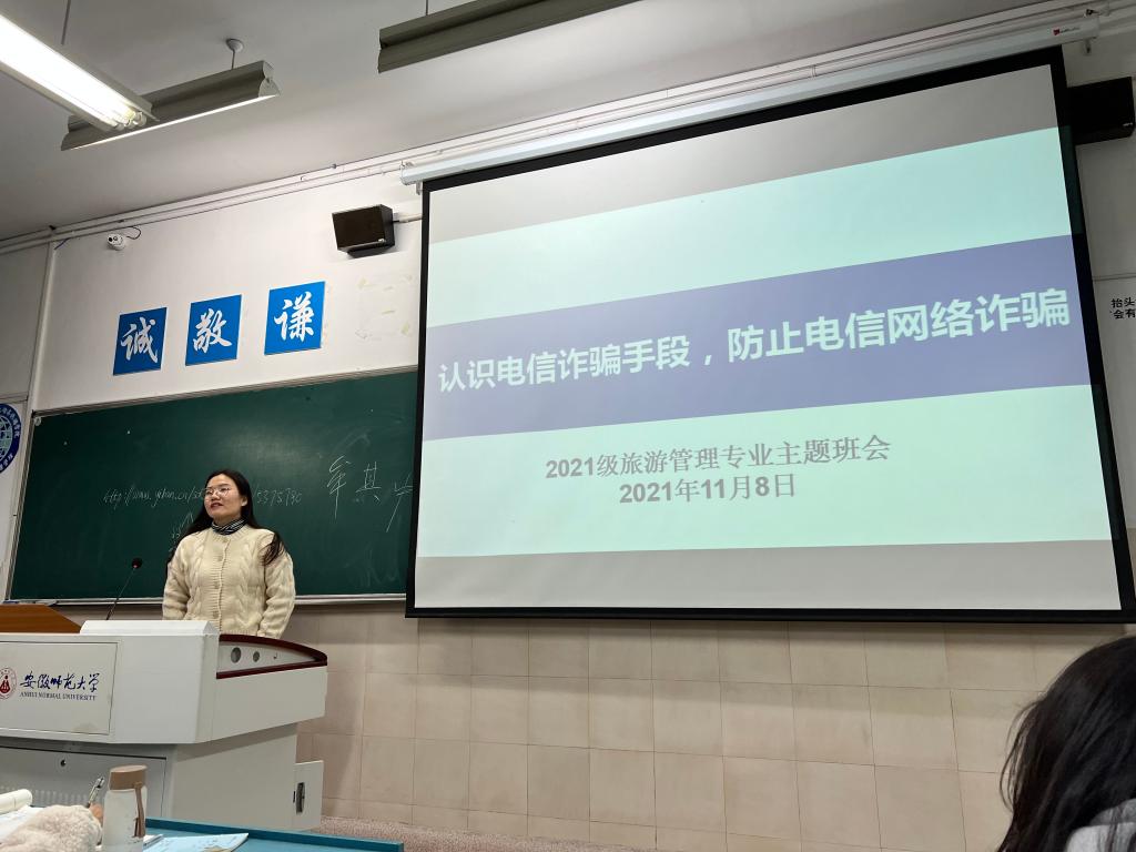 本网讯(beat365英国官方网站)为加强当代大学生的网络安全意识、识别网络诈骗能力,有效防止网络诈骗,11月8日,21级城乡规划、旅游管理专业辅导员韦银艳组织两专业分别开展防止电信网络诈骗主题班会。