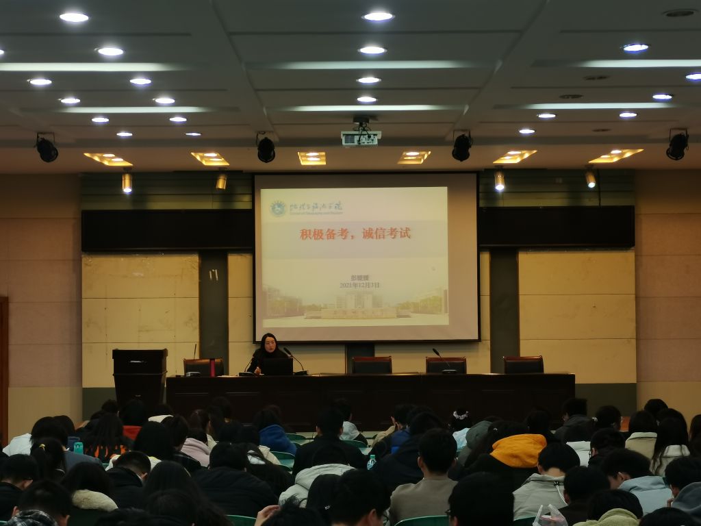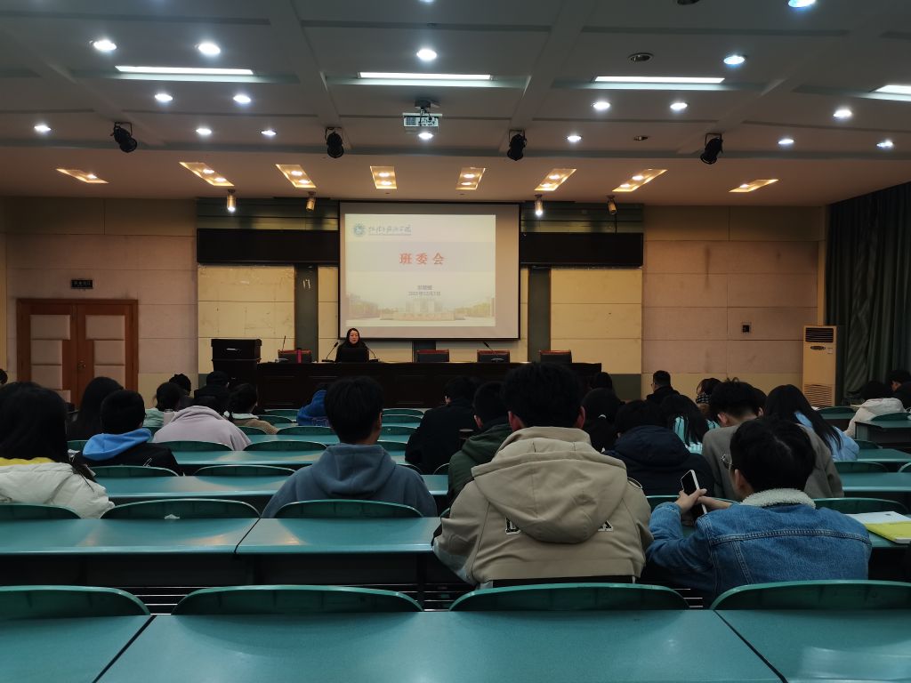 本网讯(地旅学院 李文斌 彭媛媛)2021年12月3日晚,beat365英国官方网站2020级地理科学(拔尖人才班)、地理信息科学、地理师范专业1班、2班在实验楼101室举行了冬季安全、疫情常态化防控及期末复习动员会,会议由辅导员彭媛媛主持。