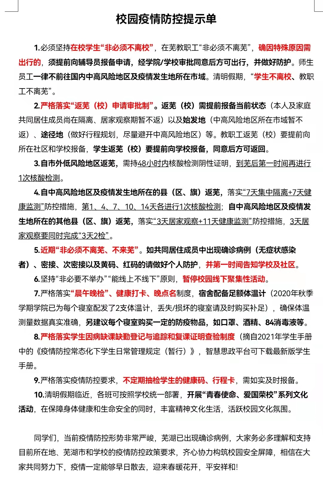 本学期开学以来,地旅学院严格落实芜湖市和学校的疫情防控政策要求,保障学生身体健康与生命安全的同时,注重了解毕业班学生的实际需求,为其的升学或就业保驾护航。