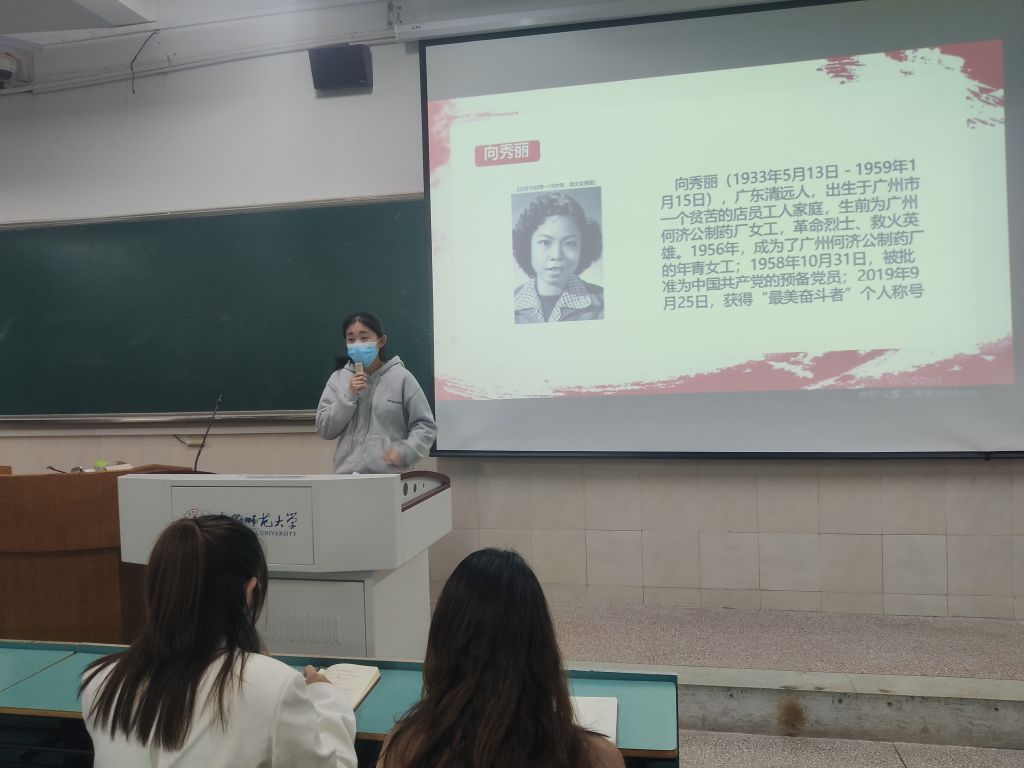 线下则组织了丰富有趣的微团课活动,活动在全体团员的齐唱团歌中拉开序幕。紧接着,同学们一起观看短片《他们为我而死》,以数字和量化的表达方式,帮助同学们直面生命的重量和烈士无畏的精神。随后,2021年度优秀团干代表曾泳瑶、优秀团员代表宋会敏以及新团员代表罗布松拉三位同学分别以烈士遗物为线索,分别和大家分享了周映渠、向秀丽、孔繁森三位英雄的故事,一枚子弹映染周映渠烈士的英魂;残缺照片记录向秀丽舍身救火的瞬间;手写资料传达了孔繁森“一尘不染、两袖清风”的高尚情操,只要我们记得,英雄们就一直都在,铭记,是为了更好的前行。