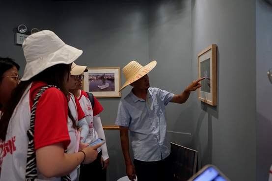 队员们随后来到了铜陵犁桥国际艺术村展示馆。展示馆内展陈了犁桥村特色农业产品,第三节中国铜陵田园艺术季主要作品摄影照片等,实践团队认真参观,对田园艺术家通过彩色水稻设计制作的《蒙娜丽莎》这幅作品十分好奇。艺术源于生活,“田园艺术季”的各类作品,创意层出不穷,有效推动乡村文旅融合发展。
