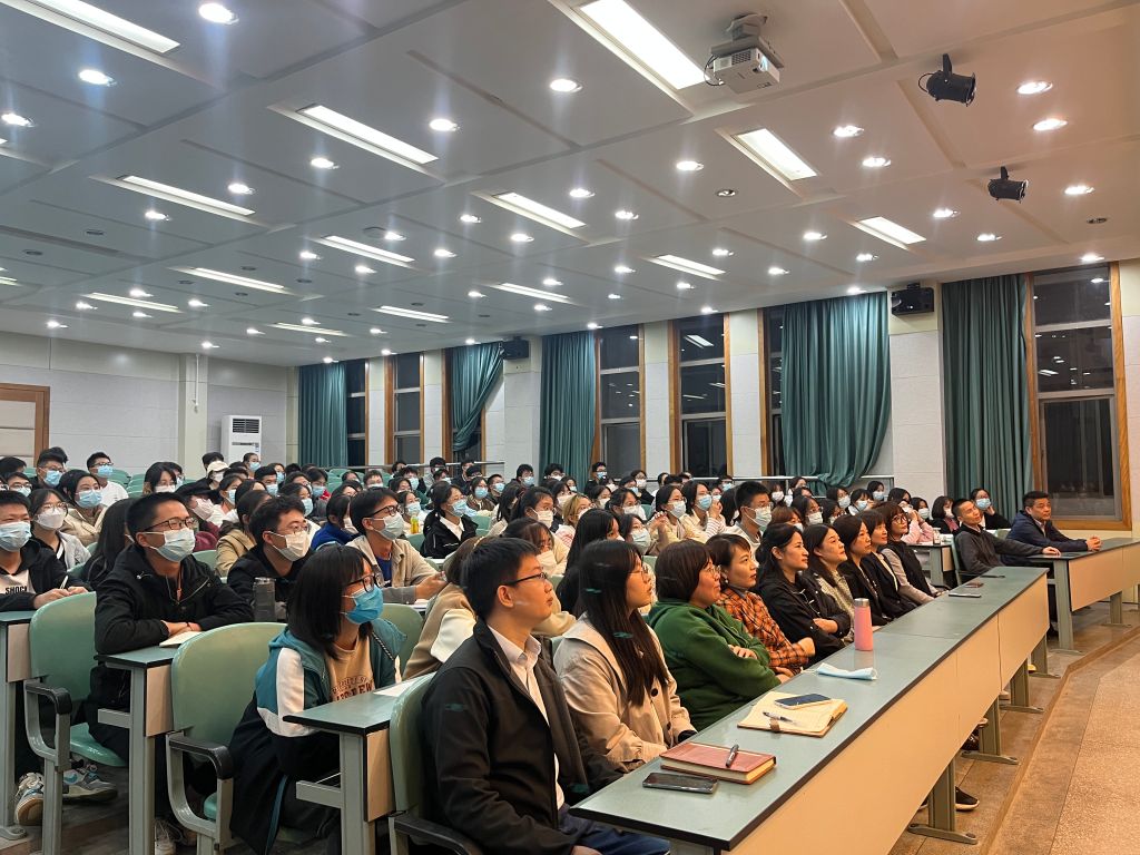 杨钊教授为同学们依次介绍了陆林教授、蔡善柱教授、王朝辉教授等专业教师风采,勉励同学们向老师们学习。