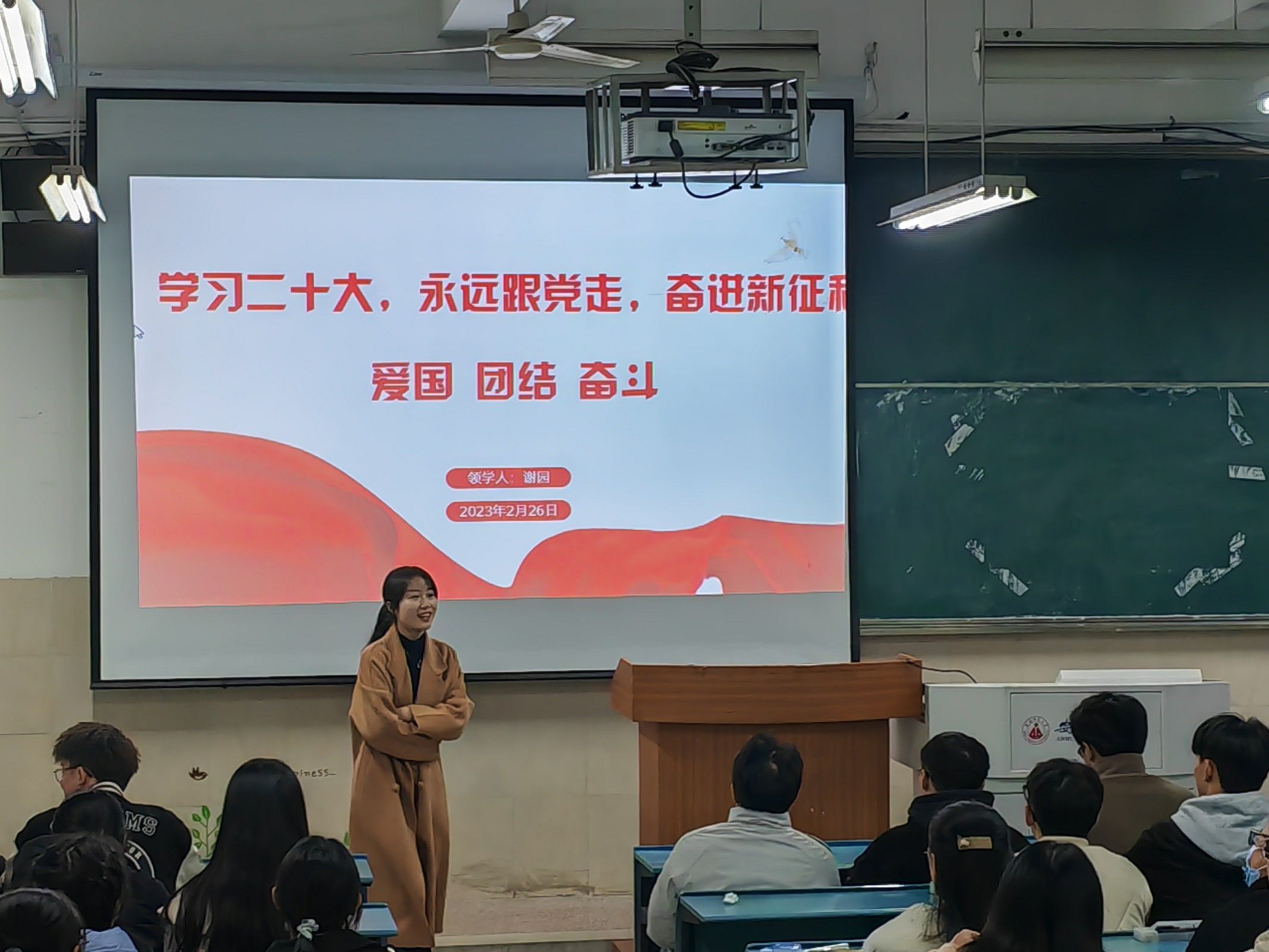 为深入学习宣传贯彻党的二十大精神,帮助学生快速适应新学期,2022级旅游管理班级开展“三个一”,上好开学第一课。