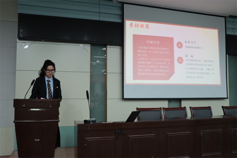 本次汇报会共有18个团支部参评,各班团支书代表班级上台汇报。汇报内容聚焦“创新创业课、社会观察课、青春共读课、志愿服务课、职场体验课、文化传承课”六课内容,展现了各自班级同学们在寒假社会实践中的独特风采。