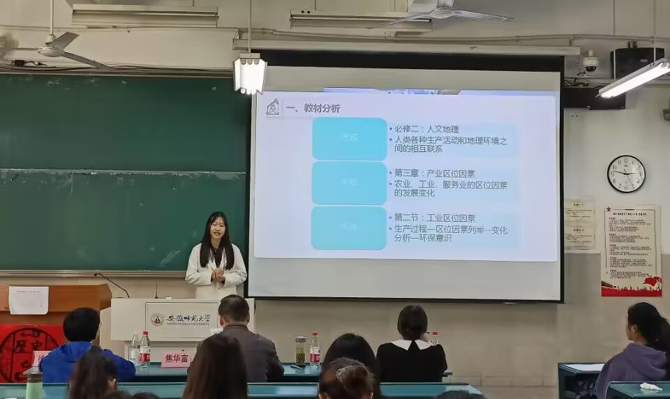本网讯(地旅学院 周润/刘雨彤/牛淑婷)为强化师范生教学技能,提高同学们教学水平和实践能力,4月2日下午,21级地理科学(师范)专业携手皖江知行社在行知楼2040102、2040103教室举办第二届“行知杯”师范生教学技能大赛。地理专业教师焦华富、朱永恒、徐仪红等担任评委。