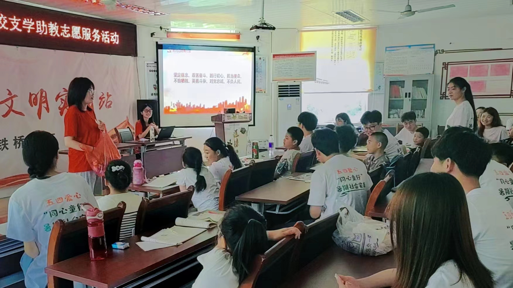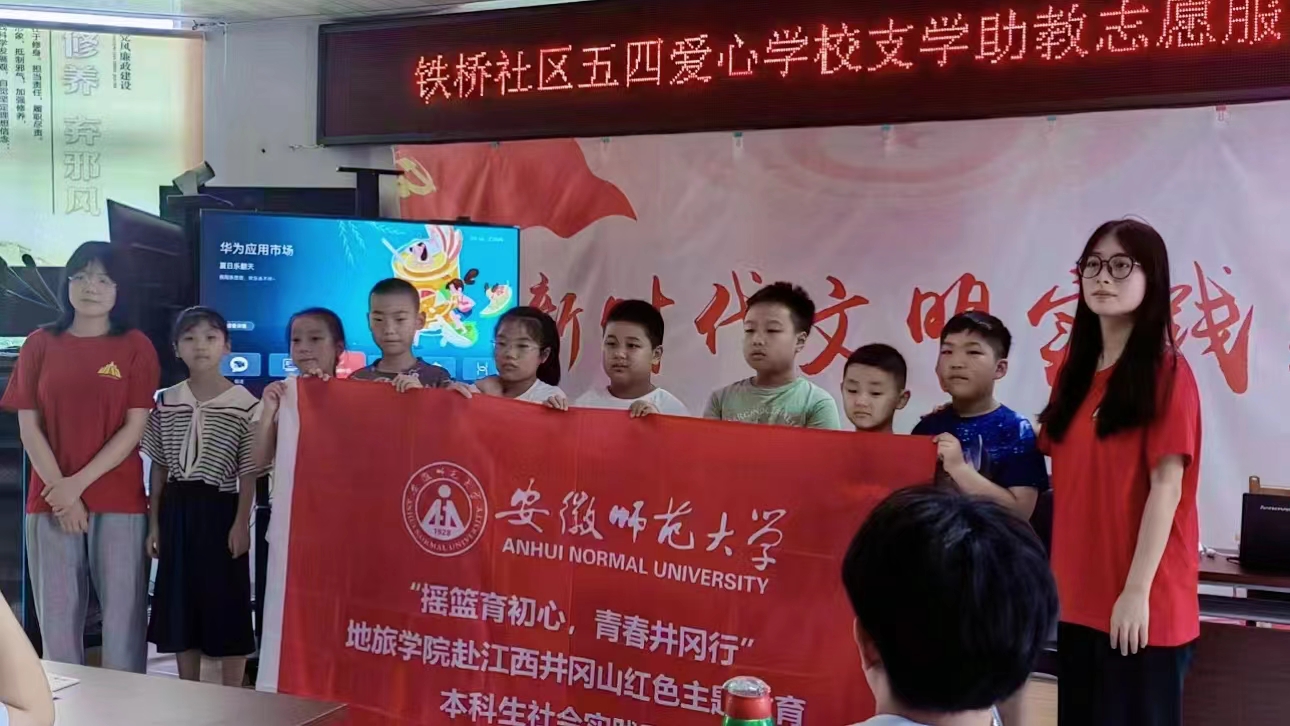 地旅学院赴江西井冈山“摇篮育初心,青春井冈行”实践团队来到芜湖市铁桥社区,对社区内小学生进行井冈山精神宣讲,重点讲述了建党起源和伟大建党精神,激发社区小学生的爱国热情和民族精神。