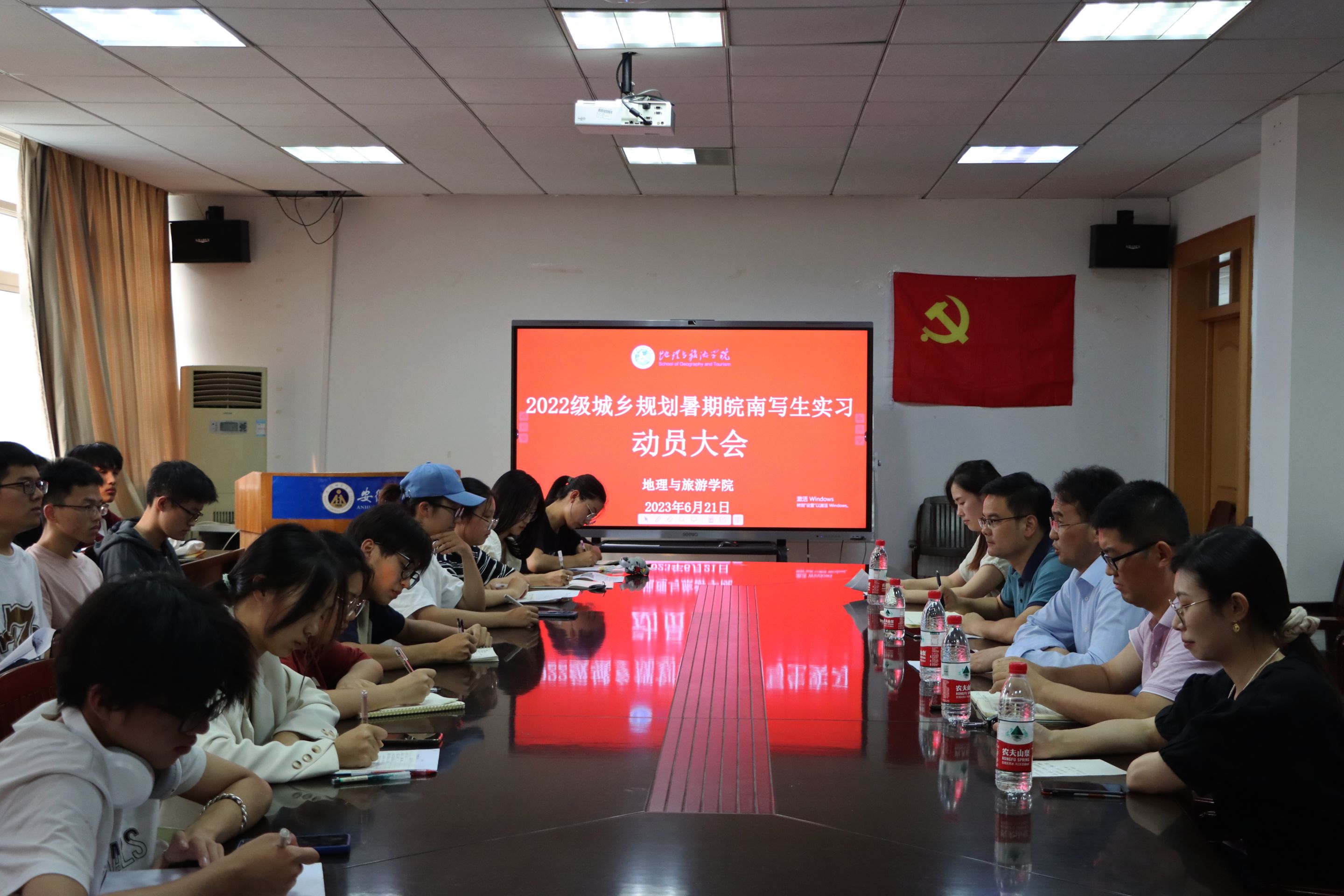 为落实2022级城乡规划专业皖南写生实习各项准备工作,6月21日,beat365英国官方网站在行政楼三楼会议室召开2022级城乡规划暑期皖南写生实习动员大会,院党委副书记付勇、副院长杨兴柱、城乡规划专业主任韩会然、城乡规划专业教师金莹莹、黄秋实、辅导员操晶晶以及2022级城乡规划全体同学参会,会议由金莹莹主持。