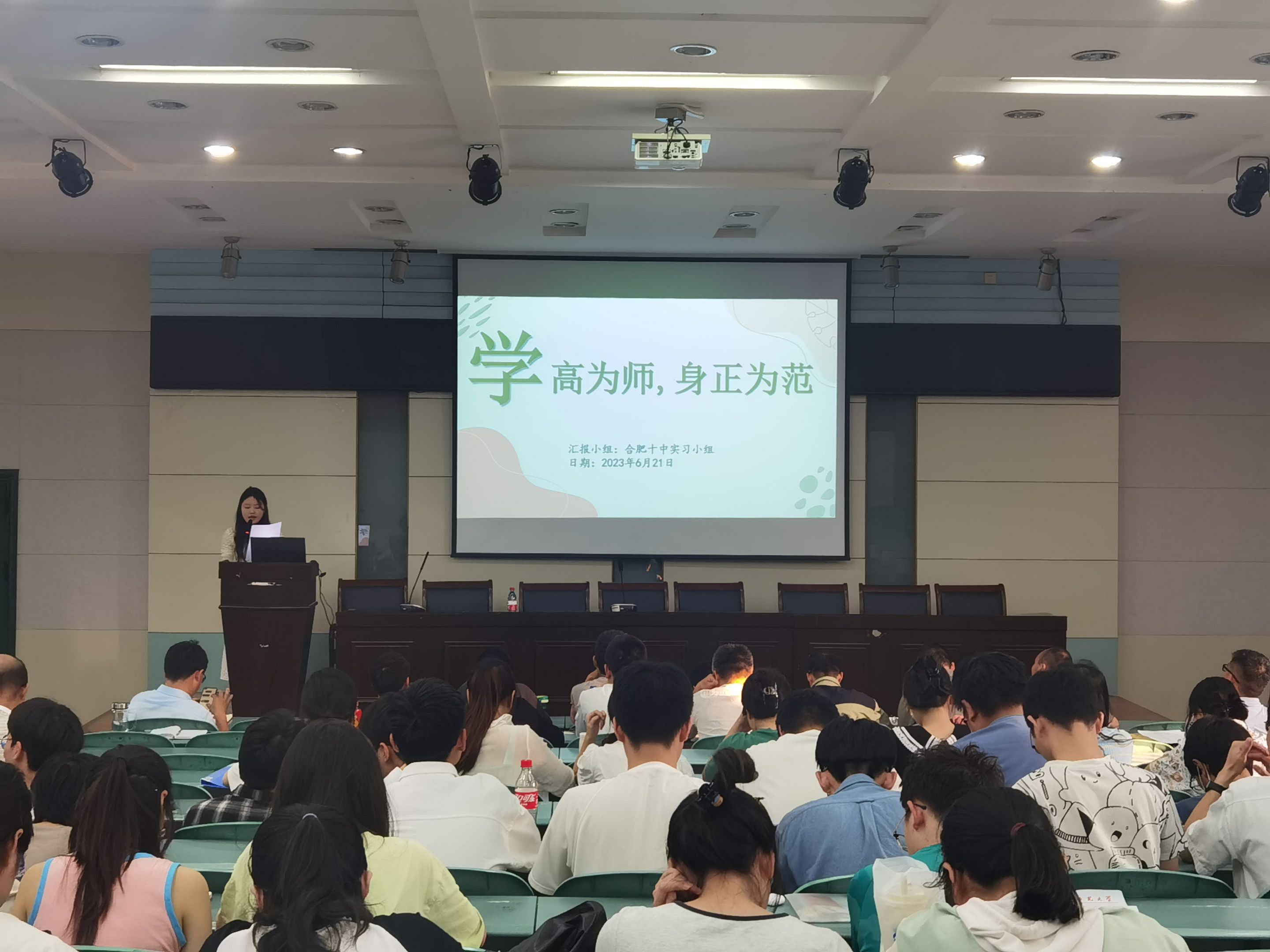 会议开始,17个实习小组对2022-2023学年第二学期以来所承担的中学教育实习工作进行了总结汇报。各组长对组内分工情况、实习进展、实习中存在的问题以及中学对实习生总体评价情况进行了详细的汇报。同时,各小组成员就教育实习中的经历分享了了自己的感悟与收获,并对指导老师、辅导员彭媛媛在实习过程中的付出表示感谢。