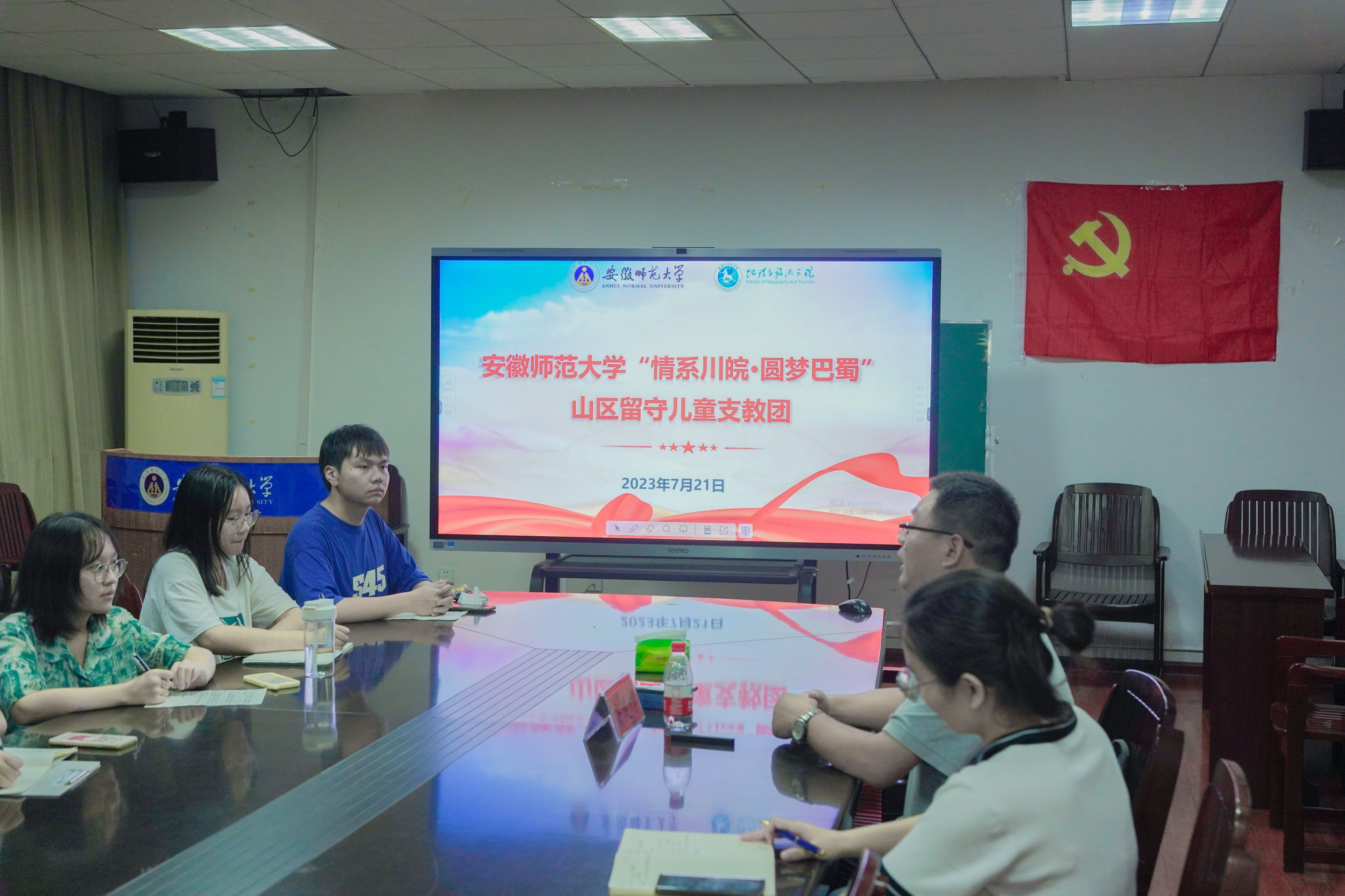 7月21日晚,“行走的思政课堂”地旅学院暑期社会实践思政课暨师生安全交流座谈会在地旅学院行政楼三楼会议室开展,马克思主义学院的安建增老师为beat365英国官方网站“情系川皖·圆梦巴蜀”2023山区留守儿童支教团、beat365英国官方网站“星火铸魂”青少年红色研学教育成效研究实践团两支暑期社会实践讲授思政课,会议线上线下同步进行。