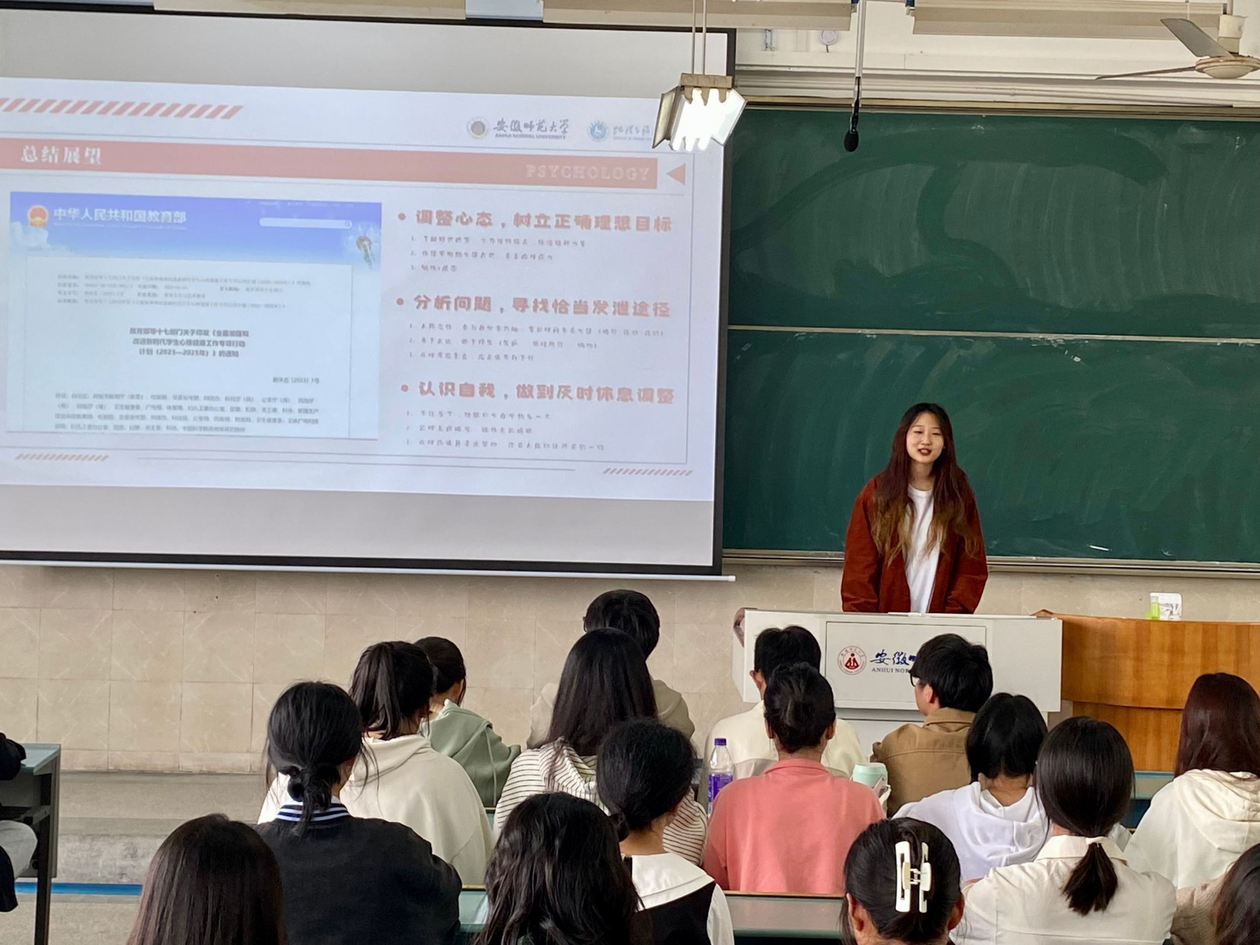 会上,孙艺丹介绍了人际问题、学习与前途、情感与恋爱等大学生常见的心理问题以及应对方法。孙艺丹提醒同学们不要混淆了“心理问题”和“精神病”,有需要可以在今日校园上预约心理咨询,不需要为此感到心理负担。会上,同学们一起观看了视频《从1岁到100岁》,感悟生命的可贵,青春的易逝。同学们就生命的意义展开热烈讨论。李馨怡说到“生命非常宝贵,我们现在正处于最好的青春时光,要珍惜时光,奋发向上。”