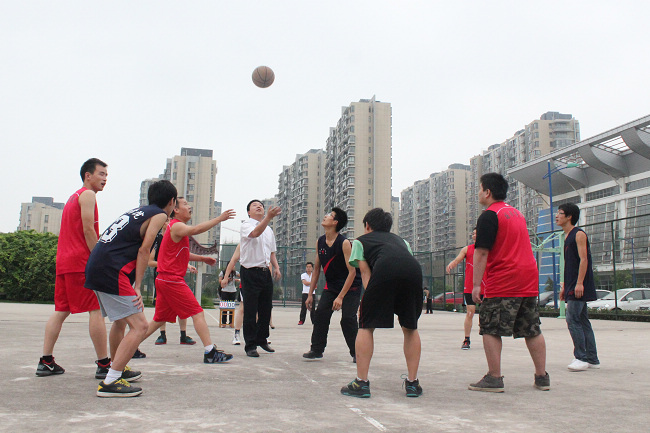 为增进师生之间的友情,营造毕业生文明离校的氛围,国旅学院分工会携手院团委,于6月9日下午在花津校区北体育馆成功举办了欢送2013届毕业生师生篮球友谊赛。院党委书记吴春雷、副书记罗振、院工会主席赵冬梅观看了比赛,院教工篮球俱乐部代表队和2013届毕业生代表队参加了比赛,吴春雷书记亲自为球赛开球。