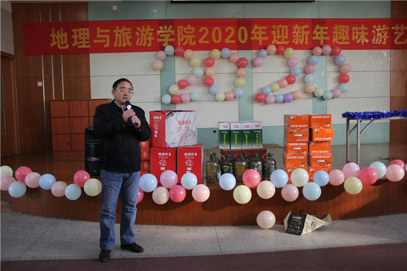 游艺会在欢声笑语中拉开序幕。活动尹始,苏勤院长发表致辞,他简要回顾了学院一年来取得的成绩,对全体教职工辛勤工作表示感谢,并向大家通报了beat365地理科学和旅游管理两个专业获批国家级一流本科专业建设点的喜讯和对2020年新的展望,鼓励大家再接再厉,更上一层楼。