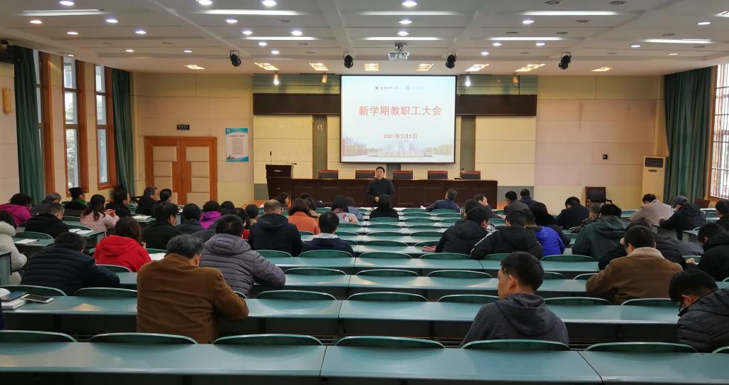 本网讯(地旅学院 陈健)2021年3月5日下午,地旅学院新学期第一次教职工大会在学院实验楼101教室召开。学院全体教职工参加大会,会议由院长苏勤主持。
