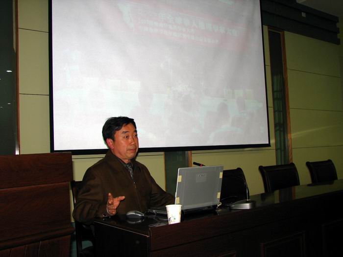 国旅学院查良松教授在院实验楼101教室,为该院师生作了一场名为“海峡两岸地理学家年会见闻”的专题讲座。