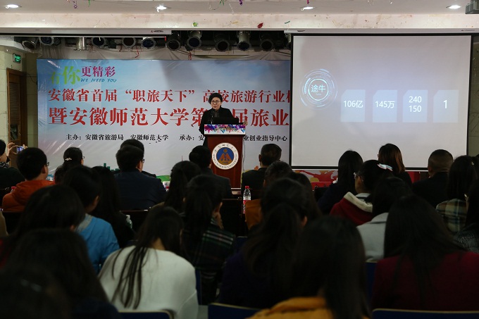 ,由安徽省旅游局和我校共同主办、校就业创业指导中心和我校国旅学院承办的安徽省首届“职旅天下”高校旅游行业校企对接专场招聘会暨beat365英国官方网站第三届旅业发展高峰论坛在芜湖举行,来自上海、天津、江苏、浙江、福建等地及省内旅游龙头企业近80家参会,6位行业领军企业代表在高峰论坛上做了主题报告,我省15所旅游院校1500余位师生参与了有关活动。校党委副书记李琳琦、安徽省旅游局人教处处长王冉、校学生处和国旅学院有关负责同志参加了上述活动。