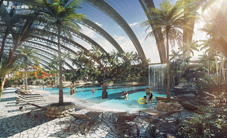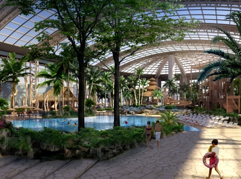 在建筑面积8000平方米森泊室内水上乐园里,能享受到全年30度的恒温体验,在热带植物的包围了享受水上游乐带来的刺激和愉悦,彷如置身于南太平的热带海岛,尽享阳光沙滩带来的度假氛围。森泊项目将引进亦或惊险刺激,亦或乐趣无穷的水上游乐活动,有最受年轻人喜爱的超级大滑道组合,适合全家共享的漂流河,观赏性极强的冲浪模拟器,还有国内独家的激流河体验,满足各类游客需求。与之相连的室外水上乐园,占地近15000平方米,作为对室内游乐的补充,随时季节更替,室外水上乐园将带来更丰富的水上游乐体验。中央设施的另一大亮点是室内儿童乐园和中央庭院。亲子主题儿童乐园占地3000方,设置了探索实验室、攀爬游乐、迷你卡丁车、蹦床、泡泡工厂、贝贝区等适合12岁以下儿童和青少年的游乐设施,同时还贴心地设计了休息区,方便家长在照料孩子的同事,享受一杯咖啡的休闲时光。中央庭院为半开放的空间,2000多平米的区域内被满满的绿植和岩石覆盖,营造出热带雨林的游乐体验,活动内容更为寓教于乐,淘沙、动物互动、丛林探险、岩洞寻宝等活动,让游客真正亲近自然融入自然。中央设施还有900平方米的游戏厅,2700平方米的特色雨林餐厅,和其他餐饮零售配套,打造全天候一站式的休闲游乐空间。